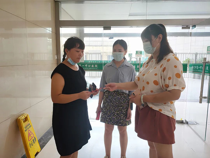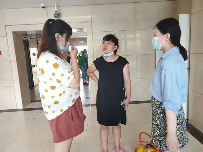 2021年7月5日,馨冠食品婦女聯(lián)合會成員賈艷、王越、王曼帶著各位婦女代表的祝福和關(guān)懷前往保定市第一中心醫(yī)院看望陳曼母親。由于疫情期間,醫(yī)院嚴禁探視,我們未能見到陳曼母親本人。