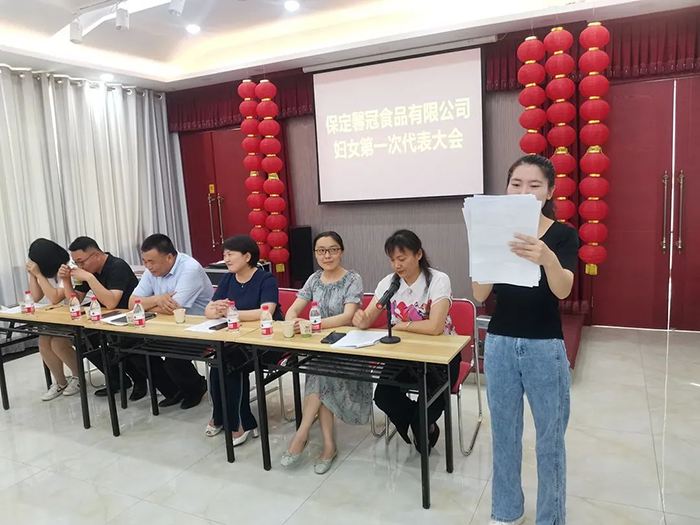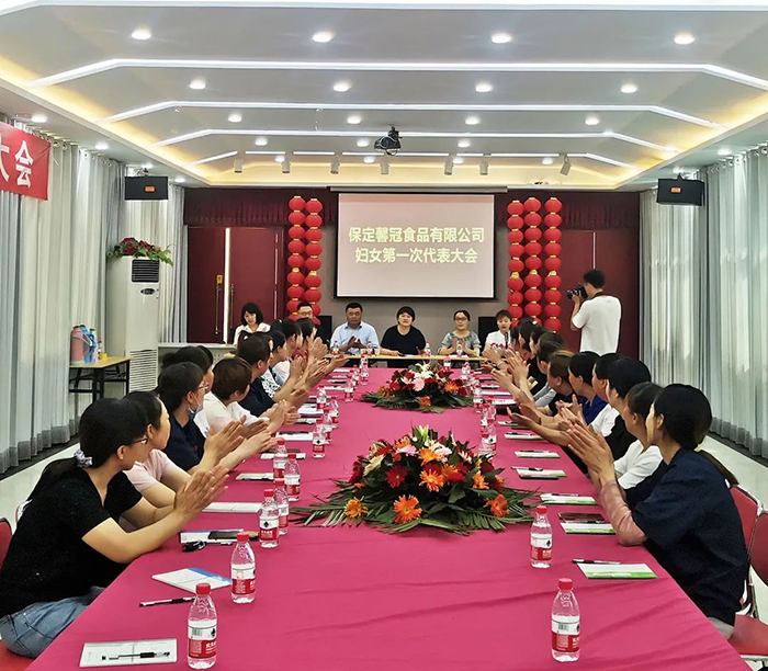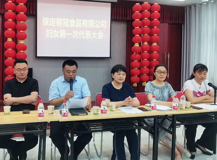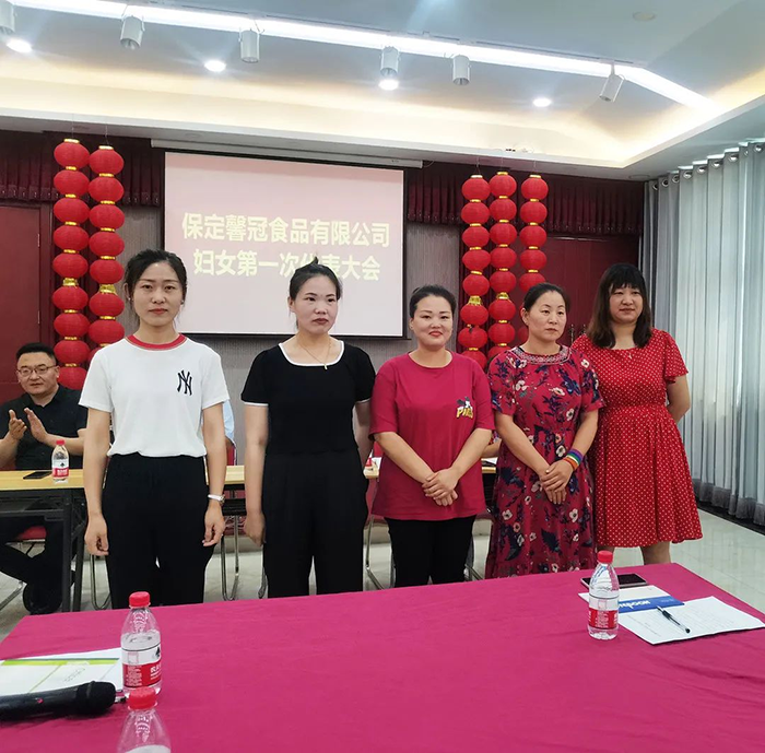 萬(wàn)物蔥綠,麥浪金黃,在這個(gè)盛夏浪漫時(shí)節(jié),2021年6月8日,保定馨冠食品有限公司迎來(lái)公司第一次婦女代表大會(huì)。宣布成立馨冠食品公司“婦女聯(lián)合會(huì)”。會(huì)議選舉產(chǎn)生第一屆婦聯(lián)執(zhí)行委員3名、主席1名、副主席1名。滿城區(qū)婦聯(lián)主席要彥偉、婦聯(lián)三級(jí)主任科員安麗敏出席會(huì)議,于家莊鎮(zhèn)婦聯(lián)主席王艷茹主持會(huì)議。村支部書(shū)記盧志鵬及馨冠公司黨支部負(fù)責(zé)人出席會(huì)議。馨冠公司30名婦女代表參加會(huì)議。 滿城區(qū)婦聯(lián)主席要彥偉、馨冠公司董事長(zhǎng)盧長(zhǎng)永發(fā)表講話。